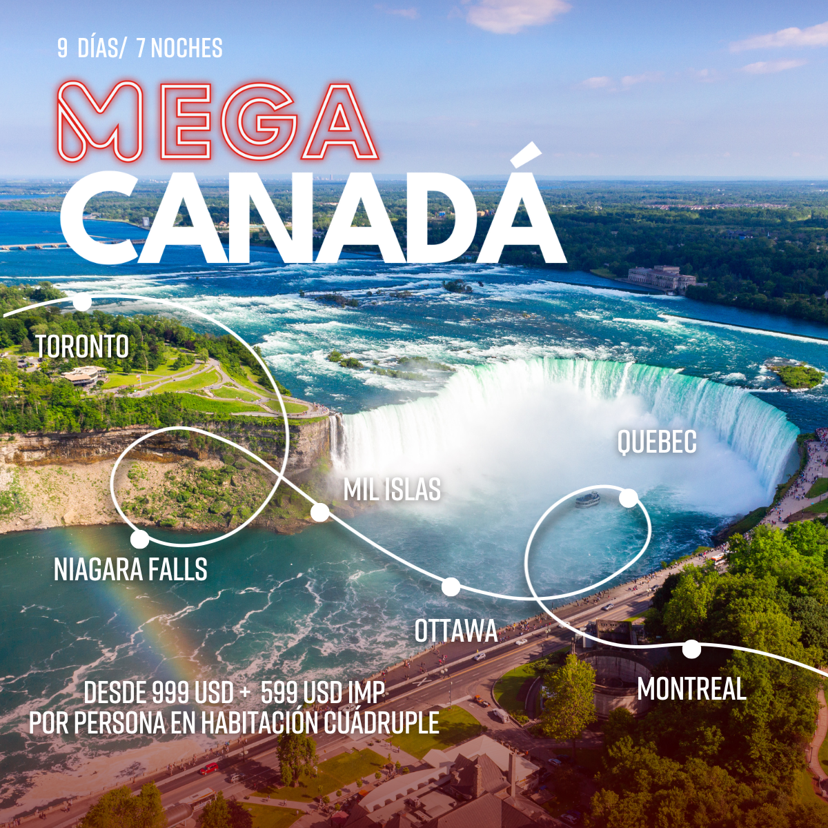Toronto, Niagara Falls, Mil Islas, Ottawa, Quebec, Montreal