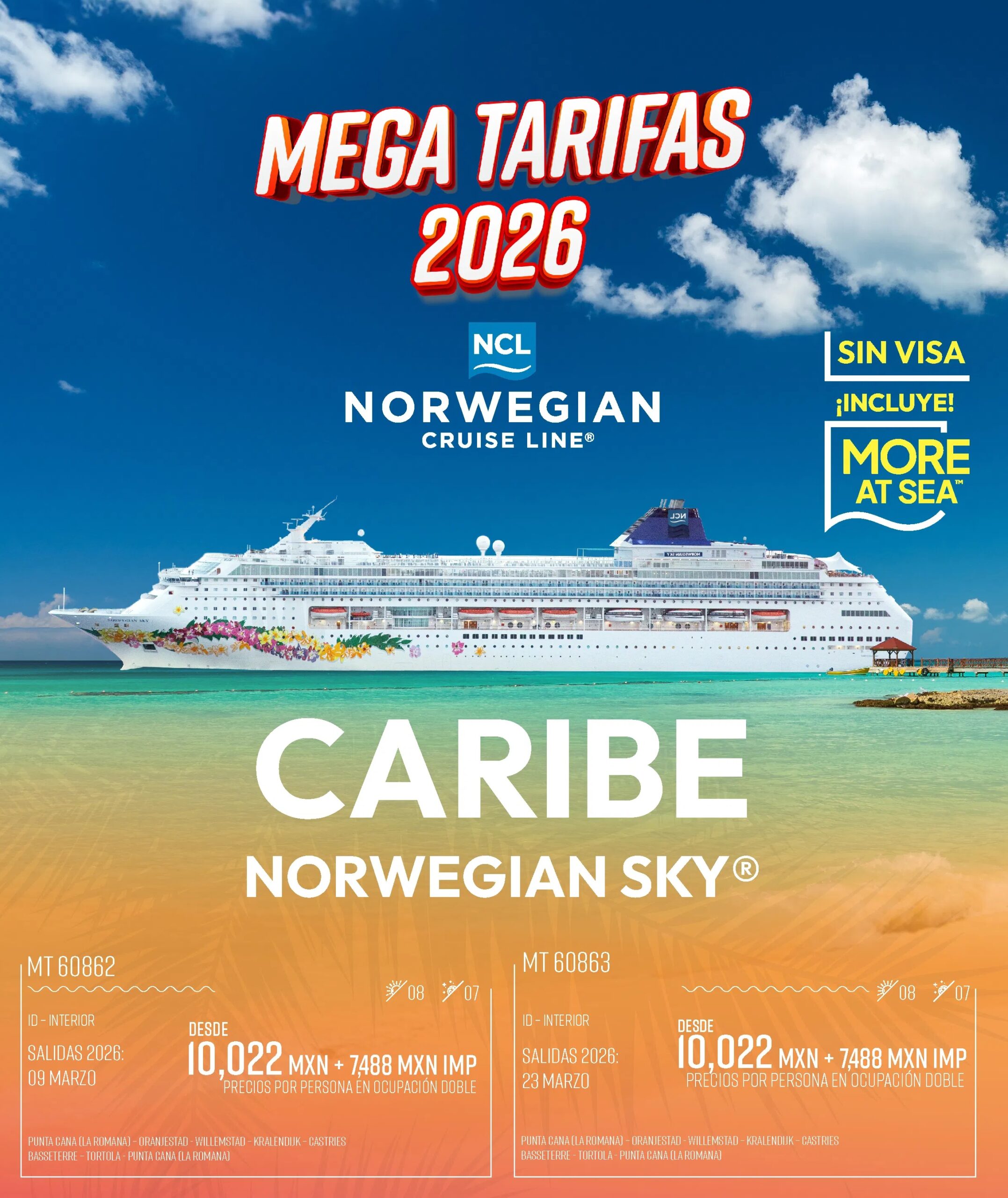 - Paquete 'More At Sea' (incluye: paquete de bebidas por pasajero, 1 cena de especialidad por pasajero, internet por pasajero en un dispositivo, 50 USD de crédito a bordo para excursiones en tierra por cabina, por puerto).