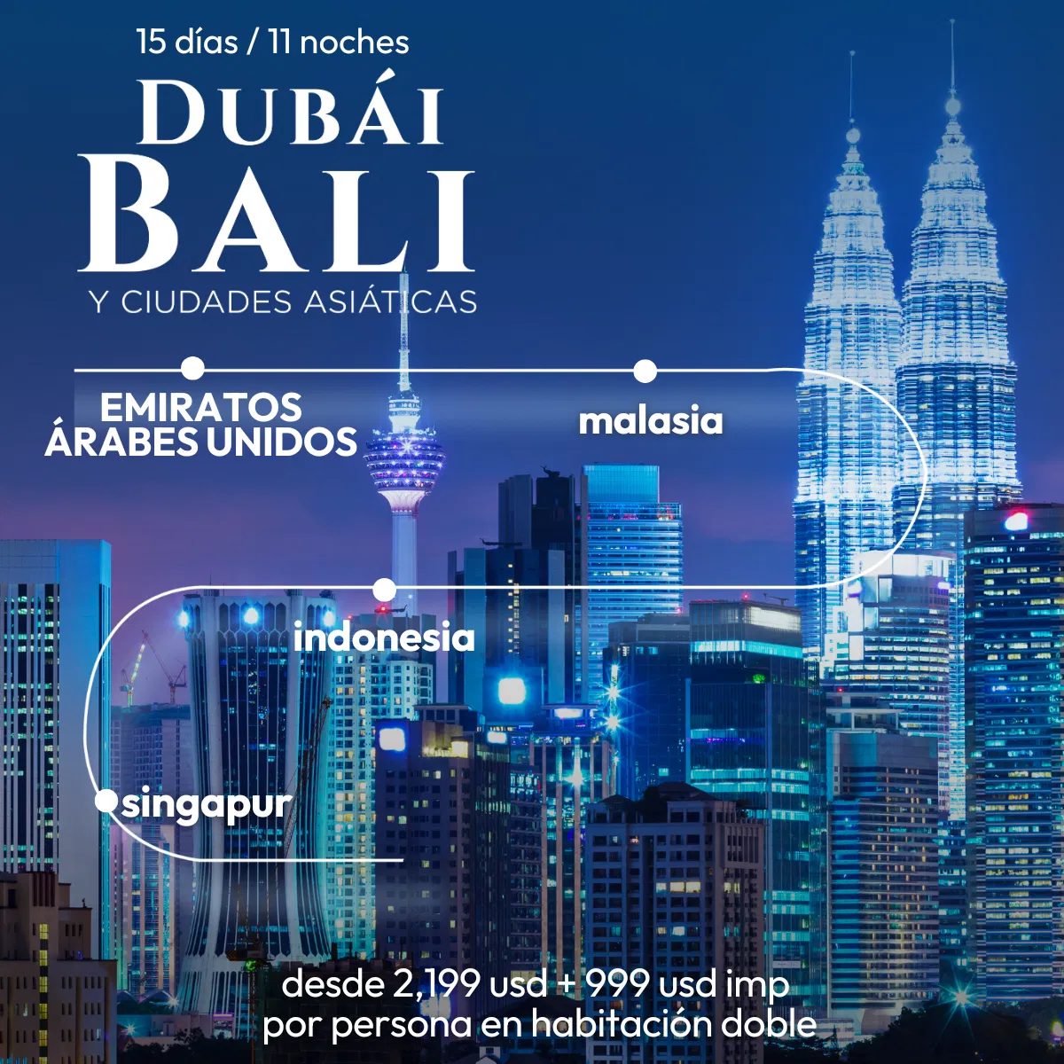 Dubái, Kuala Lumpur, Malaca, Bali, Singapur