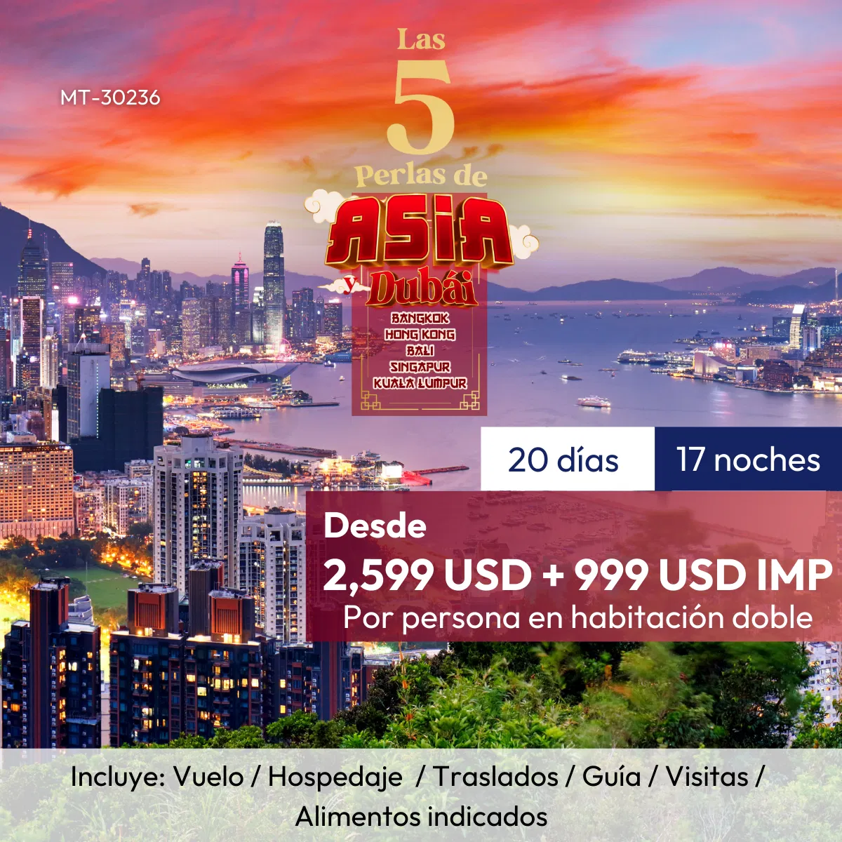 - 3 noches de alojamiento en Hong Kong.